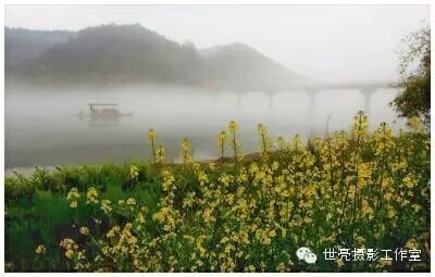 岸边的草绿了,花开了,扑面而来的是浓浓的春意,溪中已有游船在赏春了,真是雾里看花呀。